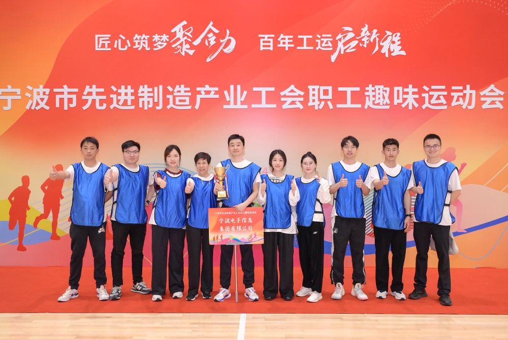 2025年4月10日,寧波市先進制造產業工會職工趣味運動會在五一廣場東樓籃球館圓滿落幕。此次運動會吸引了眾多下屬基層工會的積極參與,旨在豐富職工文化體育生活,增強職工凝聚力,共同迎接中華全國總工會成立100周年。寧波電子信息集團有限公司工會代表隊在趣味運動會中表現出色,憑借團隊協作和拼搏精神,最終榮獲“團體三等獎”的好成績。
